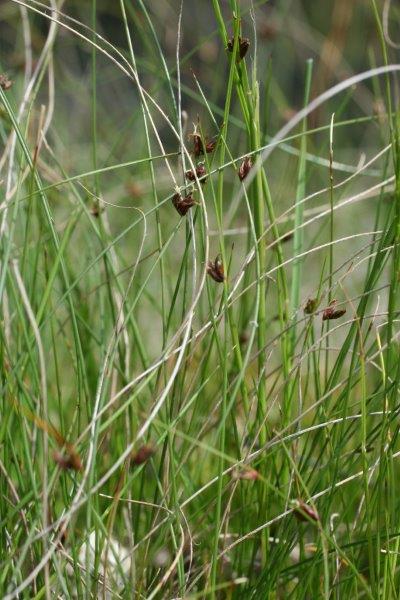 Flowerheads are produced in spikelets which are shining pale to dark brown; white anthers are conspicuous at the time of flowering.
